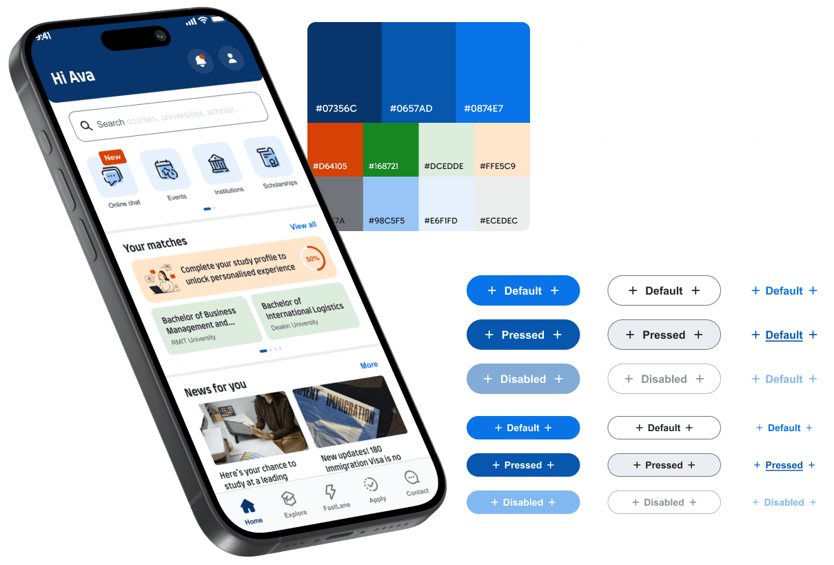 Elevated the visual language by replacing dated gradients with a refreshed colour palette. I also redesigned all primary components within the UI Kit to align with modern design standards and ensure visual cohesion.