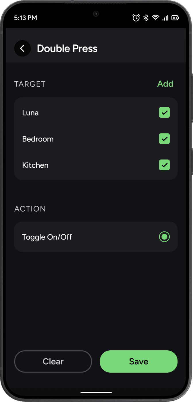 As new lighting product with integrated smart buttons were released at LIFX, the configuration screens determine how users map physical button presses to lighting actions, which is a core interaction within the ecosystem.